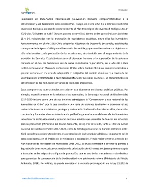contexto en el cual los humedales son de suma importancia. Y por último, en el año 2017 Chile