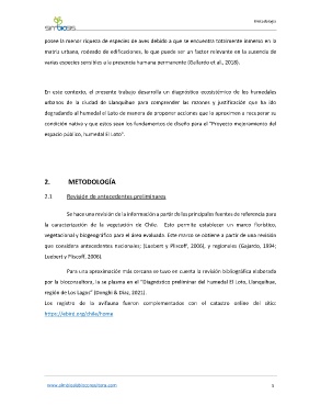 por la bioconsultora, la se plasma en el “Diagnóstico preliminar del humedal El Loto, Llanquihue,