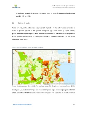 (2012), presenta un 73.1% de cobertura de suelos de tipo I, II y III. Los suelos de clase I, presentan