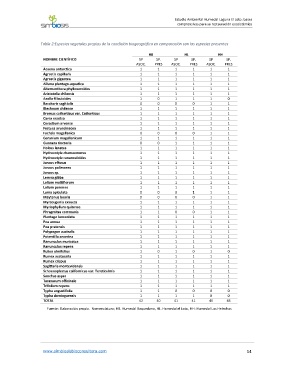 Tabla 2:Especies vegetales propias de la condición biogeográfica en comparación con las especies presentes