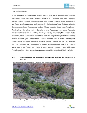 Acanthophylla, Glandularia berteroi, Guindilia trinervis, Haplopappus arbutoides, Kageneckia